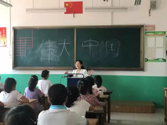9月2日,我跟随潍坊市电视台一同走进了寿光营里镇道口小学,一间受灾群众撤离时,在黑板上写下“伟大中国”四个大字的教室里,和同学们上了特别的开学第一课。