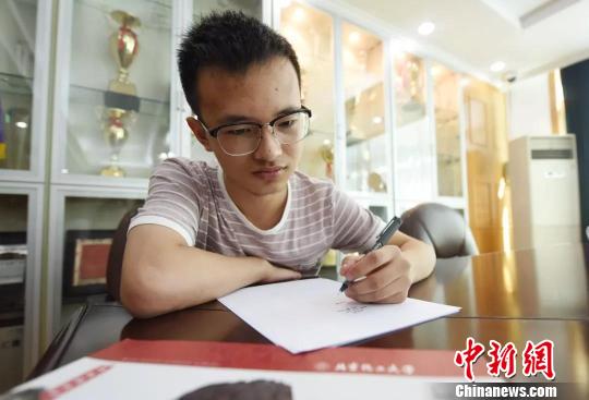 图为:石炜刚用左手写字。杭州市残联供图
