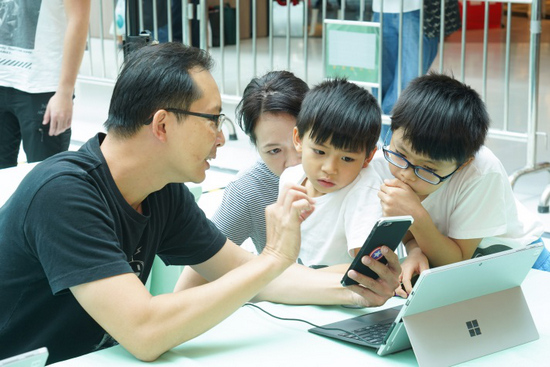 现场举办的“设计VR小游戏”体验工作坊,让小朋友学习如何设计VR游戏。