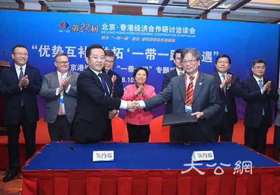 大公网10月24日讯(记者 李锐)第二十二届北京·香港经济合作研讨洽谈会今日(24日)在北京开幕。记者从京港携手共建“一带一路”专题活动上了解到,北京基金小镇与香港投资基金公会达成战略合作,双方将发挥各自优势,共同引导两地基金机构参与“一带一路”建设,为两地基金企业投资“一带一路”相关产业和项目提供信息及服务。