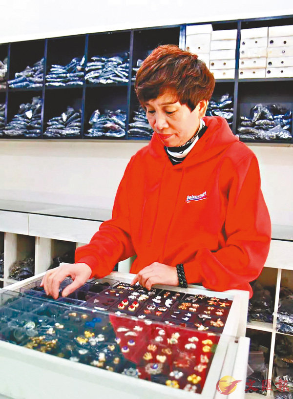 章华妹闲暇时间最爱在店舖内整理钮扣样品。资料图片