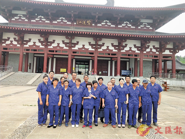 赵启华(右一)带领残疾人员工在合肥景区游览。