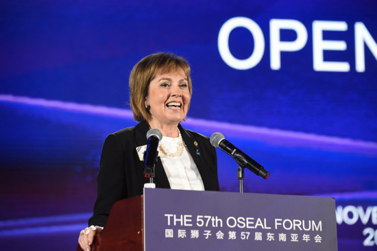 国际狮子会会长古德龙·英格达德女士在致辞中说,中国自2002年在广东和和深圳成立狮子会组织以来,目前已成为全球发展最快的国家之一。狮子会目前在中国已有超过1300支服务队和近42000名会员,且超过38%的会员是女性,这已超过狮子会在全球的平均水平。随着中国狮子联会的快速发展,中国已成为国际狮子会成员中具有重要地位的一员。