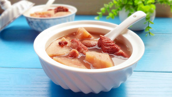材料:熟薏米、粉葛、赤小豆、陈皮、蜜枣、猪腱