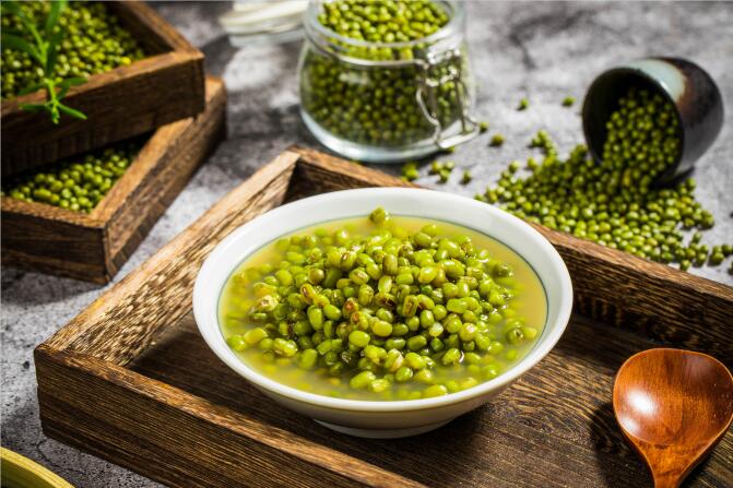 中医认为,绿豆性甘寒,有清心利尿、消暑止渴、清热解毒之效,常用于治疗暑热烦渴,心、胃热盛及痈肿、丹毒等证。绿豆汤是民间最常用的消暑与解毒良药,锅里加水煮沸后放入绿豆,盖上锅盖三分钟后关火,这时清热解毒效果最强。但是绿豆性寒,容易腹泻的脾胃虚寒者不宜多服。