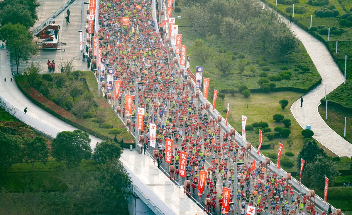 13日7点30分,随着清脆的发令枪声响起,浩浩荡荡的长跑队伍陆续从波光粼粼的如意湖畔出发,离开高楼大厦鳞次栉比的郑东新区CBD,经过碧波荡漾的龙子湖区域后,从平安大道开始,一路向西,经由绿树掩映的金水路、人民路,宽阔平坦的中原路,穿过商代城墙遗址、二七纪念塔、碧沙岗公园等,直达设在郑州新地标奥体中心的终点。纵贯城市东西的赛道上,一个个激情四射的红色身影,汇成一条奔腾的红色河流,为郑州增添了一条跃动的红色纽带,活力在整个城市中激荡。