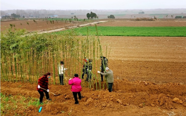 当地村民在种植竹子,围村造绿(陈辉 摄)