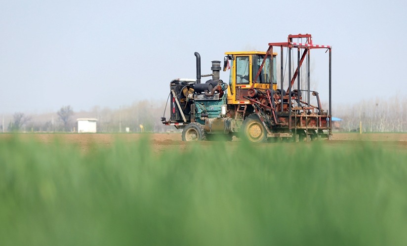 3月5日,河南省焦作市温县武德镇马冯蔺村农民在田间驾驶农机耕地准备种植山药(徐宏星 摄)