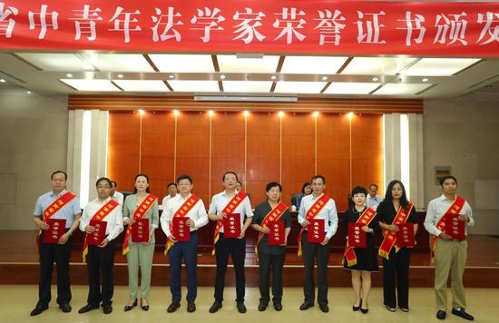 河南省法学会会长刘满仓,省人力资源和社会保障厅副厅长杨韫,省法学会党组书记、常务副会长李承先,省法学会副会长谢德安等出席并为获得“河南省中青年法学家”称号的10名同志颁发证书。河南省法学会党组成员、秘书长雷忠旺主持荣誉证书颁发仪式。