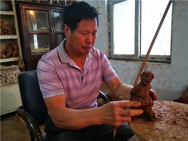 6月11日下午,平顶山市鲁山县县城的一间民房内,河南省民间工艺大师王忠富一边对手里的泥巴进行拍捏,一边旋转着面前的雕塑转台,不到十分钟的功夫,一捧再普通不过的泥土,在王忠富的手下,变成了一个栩栩如生,面目径寸,形神毕肖妇女形象的泥人,令现场之人无不啧啧称奇。