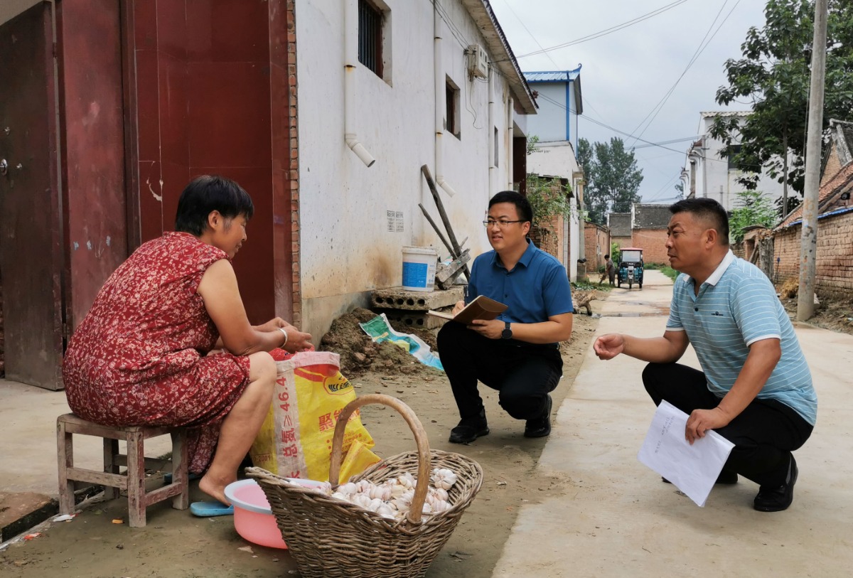 湖岗乡宋院村工作队长李廷斌(中)开展走访工作