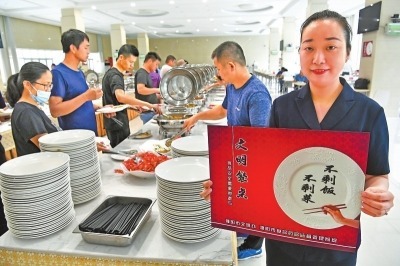 日前,中原油田机关服务中心餐厅服务部员工在进行“不剩菜不剩饭”文明用餐宣传。同日,焦作市解放区在中小学校以及幼儿园开展“爱护粮食、健康饮食”主题活动,积极培养孩子勤俭节约良好美德。
