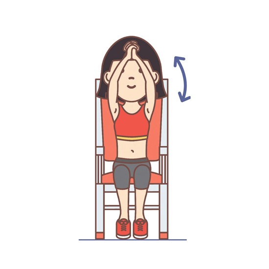 1.坐在椅子上,双手合握于大腿上,再慢慢举起双臂。