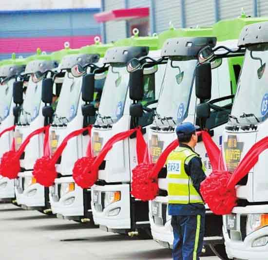 10月27日,洛阳市银隆新能源(洛阳)产业园区举行新一代银隆新能源纯电动市政环卫车交车仪式。潘炳郁 摄