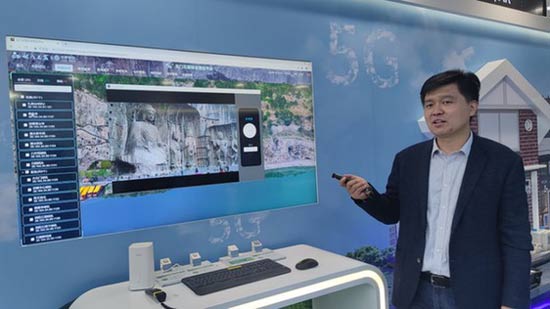 在龙门石窟景区,中国移动河南公司架设多个360°高清摄像头,通过移动5G网络实时传输至云平台。中国移动河南公司5G行业主管仝另帅解释说:“这个摄像头的位置在龙门石窟卢舍那大佛河畔,低头看就如在河边一样,会给人们造成要掉到河里的即视感和体验感。”