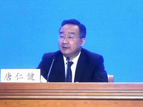 甘肃省长唐仁健介绍甘肃脱贫攻坚情况(记者 刘俊海 摄)