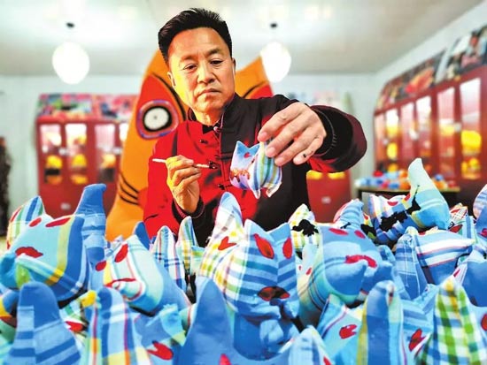 1月23日,淮阳非遗传承人“老虎雷”雷智超在制作布老虎。为了使非物质文化遗产项目淮阳布老虎更好地进校园,传承人雷智超特地开设了网上直播,进行免费教学。