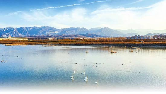 2月1日,洛河洛宁县城区段,白天鹅和野鸭等多种水鸟自由地在水中游弋嬉戏,呈现出一幅和谐优美的生态画面。近年来,该县对洛河持续开展生态综合治理,水质和生态环境越来越好,每年都吸引大量的鸟儿在此栖息、繁殖。