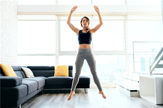 建议在家中定时进行深蹲及开合跳,每一动作重复10至15次,每组之间休息30秒,共进行三组,量力而为稍作调整次数及休息时间。