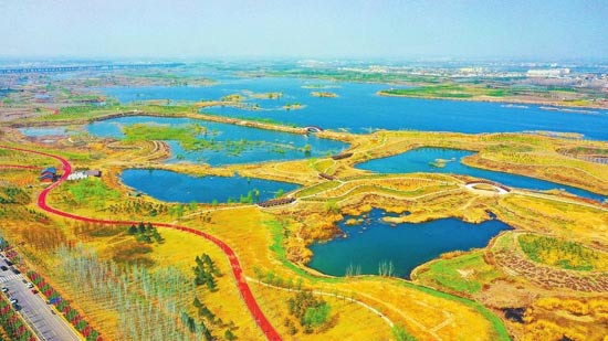 洛阳市伊河东段生态修复与重建项目小东湖游园绿道绵延,风景如画 河南日报记者 聂冬晗摄