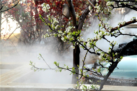 阳光透过李花的花瓣,泛着银光,温柔了众人的眼睛,散落了一地斑斓。桃花李花齐绽放,孩子们在淡雅的花香中享受着书香的生活。
