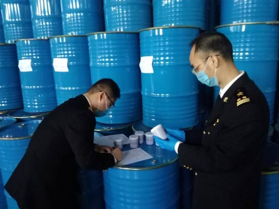 许昌海关关员对出口蜂产品开展现场检验工作