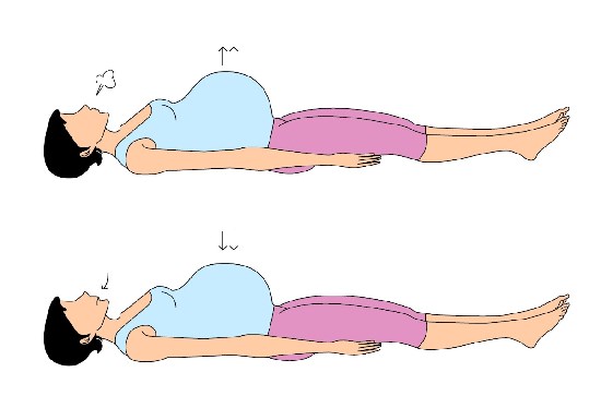 2. 呼气时腹部慢慢向内收,呼尽气时一直维持内收。