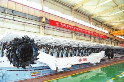 总装车间内,采煤机、刮板机、运输机一字排开,即将被装上卡车,交付宣威市能拓矿业有限公司。展示大厅里,远程操控系统通过5G信号,可模拟向千余公里外的宣威市能拓矿业有限公司薄煤层开采工作面发出指令。
