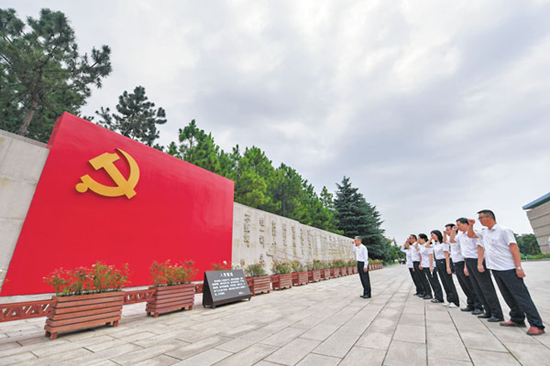 ●为纪念中国共产党百年诞辰,中共中央决定,2021年将首次颁发「光荣在党50年」纪念章。图为去年7月1日,浙江嘉兴市新冠肺炎疫情抗疫一线党员在南湖景区的南湖革命纪念馆参加「七一」重温入党誓词活动。 资料图片