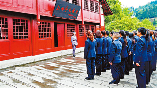 走进“扎西会议”纪念馆,来自审计部门的干部神色凝重、庄严列队,参观文物陈列、认真听取讲解;纪念馆一侧的“扎西会议”会址,香港文汇报记者见到一队税务干部整齐列队,聆听扎西干部学院教师的现场教学。威信县委副书记赵红介绍,扎西干部学院的教学早已排期至十月,各地党员干部纷至沓来,换上红军装、戴上八角帽,听党史、上党课、唱红歌、重走长征路、参观遗址遗迹、拜谒红军烈士陵园……了解“扎西会议”的历史地位与作用,领略红军斗争史。