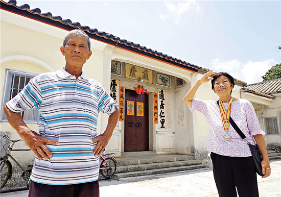 杨家村后人杨永光(左)、老战士林珍(右)。大公报记者文澔 摄