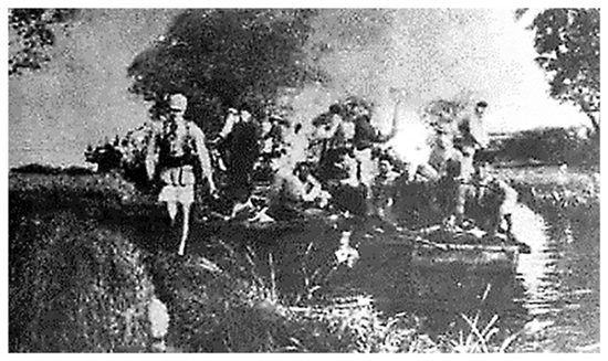 上午8时左右,巢城方向的河面上隐约出现两艘汽艇。随着敌船渐渐驶近,新四军可以清楚地看到日军头上的钢盔和手中的刺刀。此时,正面指挥的郭思进抬手一枪,一名日军应声跌入水中。枪响令出,战士们的手榴弹像雨点一样扔向敌军,给日军打了个措手不及。仅20多分钟,新四军就全歼这股日军,并缴获步枪10余支、机枪1挺等,且无一伤亡。战后,新四军迅速撤离。
