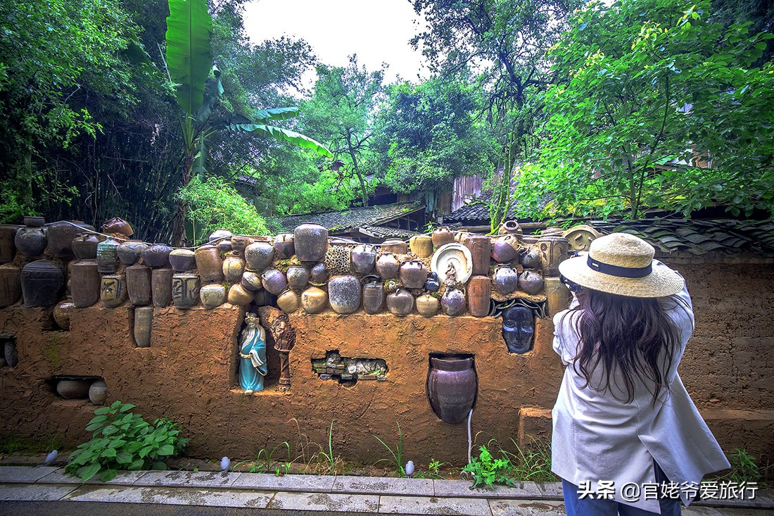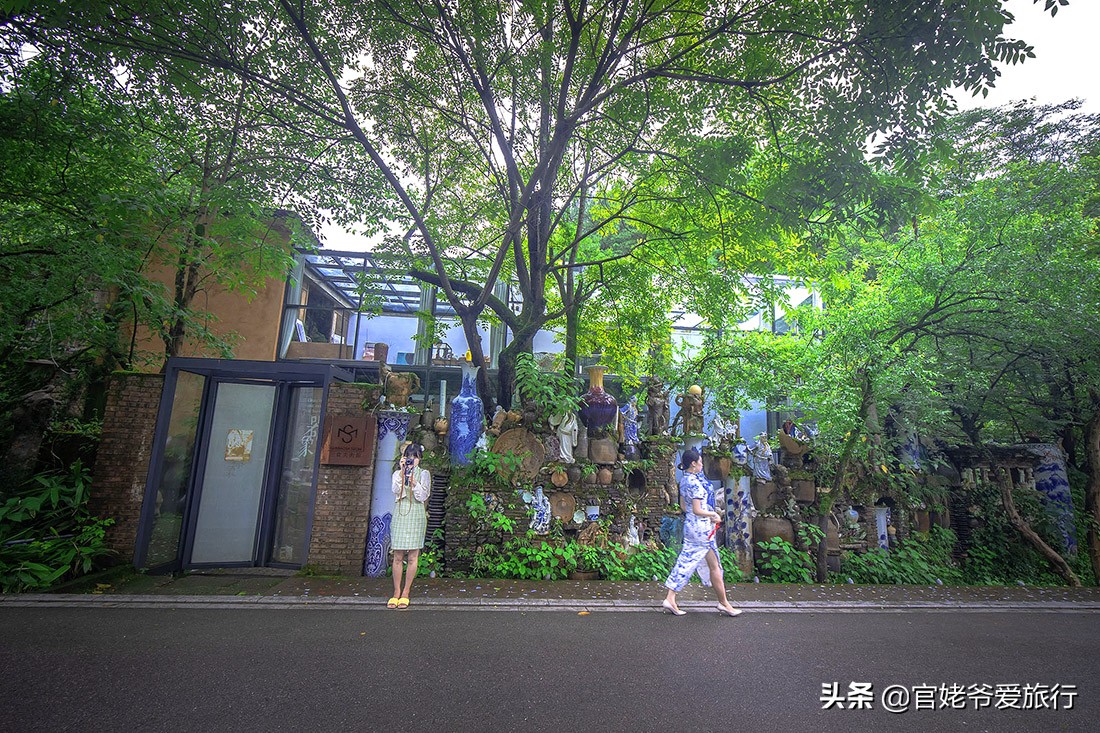司机师傅建议我们从网红墙由里向村外走,“网红墙”为路边的陶艺墙,有人说墙体材质都是陶瓷“垃圾”,断臂的观音、有裂纹的领袖像、没有头的菩萨,甚至一块渣饼、一只碗底、一只变形的龙缸,这个产次品经过艺术设计,与环境完美融合,既展现了陶瓷的元素,又不失一种时尚,因此备受爱美的人喜爱。
