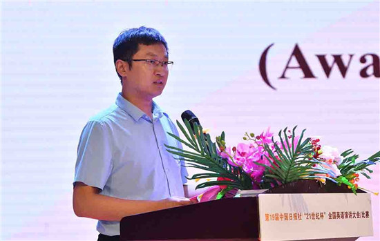 中国日报社二十一世纪报社河南工作站站长、第19届中国日报社“21世纪杯”全国中小学生英语演讲比赛河南地区项目组主任杜琛致辞 丁友明 摄
