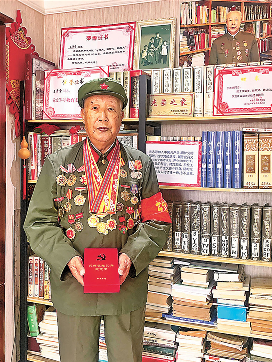 “我1955年7月2日加入中国共产党,今年已经91岁了,但我不服老,只要我还活着,我就不会停止奋斗,永远跟党走,做中国共产党光荣传统和优良作风的忠实传人。”王济堂,13岁就参加抗联地下秘密情报工作,东北解放后,他严守党的秘密,继续在公安战线上为保卫人民奋斗。直到2015年,获得俄罗斯总统普京授予的“1941—1945年伟大卫国战争胜利70周年”纪念勋章时,他的“潜伏”抗日传奇经历才被世人知晓。