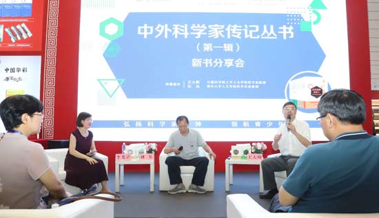15日在山东济南召开的第30届全国图书交易博览会上,“中外科学家传记丛书(第一辑)”新书分享会举行,该丛书主编中国科学院大学人文学院哲学系王大明教授和清华大学人文学院科学史系刘兵教授围绕“弘扬科学家精神 领航青少年成长”这一主题畅所欲言。