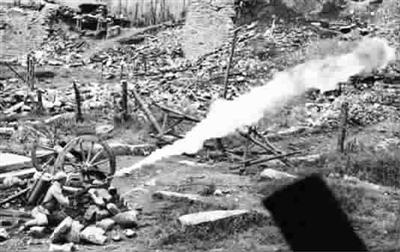 中国远征军士兵用火焰喷射器消灭顽抗的日军
