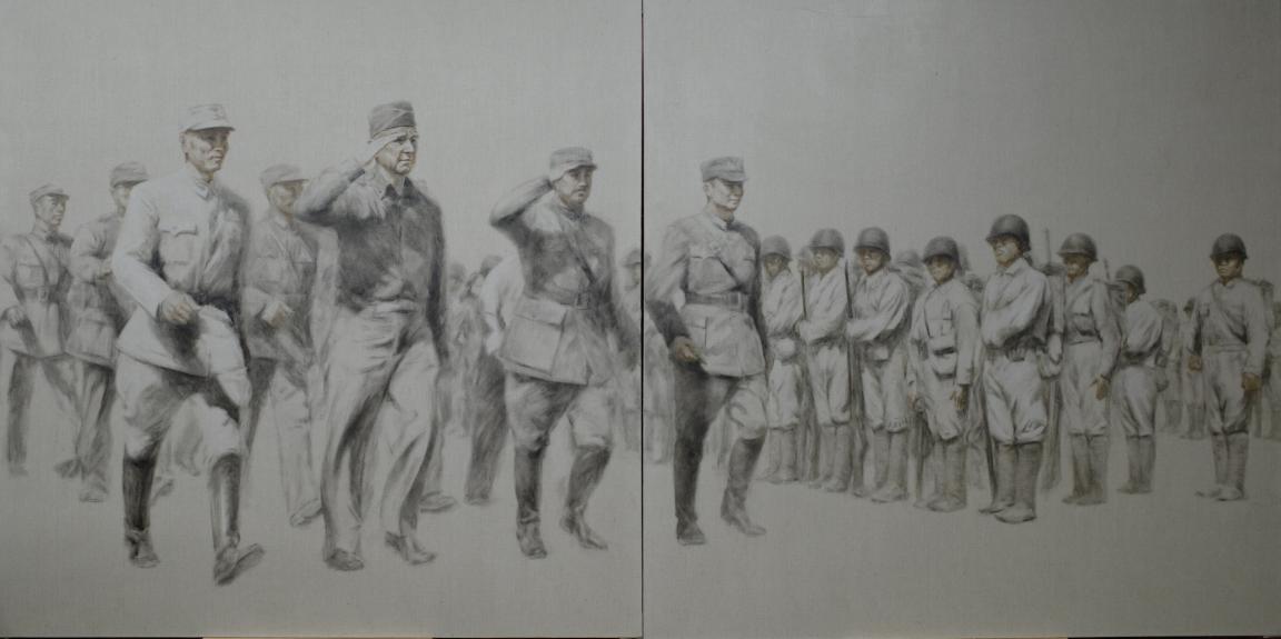 在查阅了大量资料后,她最终选择由美国通讯兵连队拍摄的,孙立人、索尔登、卫立煌、黄琪翔等中国驻印军、远征军将领带领将士们在缅甸芒友附近举行会师的照片为参照。任鸢表示,照片中将军们坚定的步伐和将士们坚毅的表情给了她极大的震撼。“艺术家常常有那种被击中的时刻,当时我就跟自己说‘一定要画它!’”