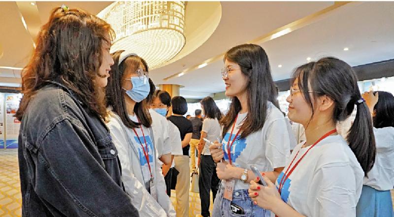 香港、河南两地学子在启动仪式上交流。\大公报实习记者薛心壹摄