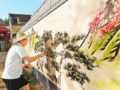 7月11日,河南开封科技传媒学院艺术学院的学生来到长垣市樊相镇留村参加暑期“三下乡”活动,为乡村画墙绘。 连鹏飞 摄