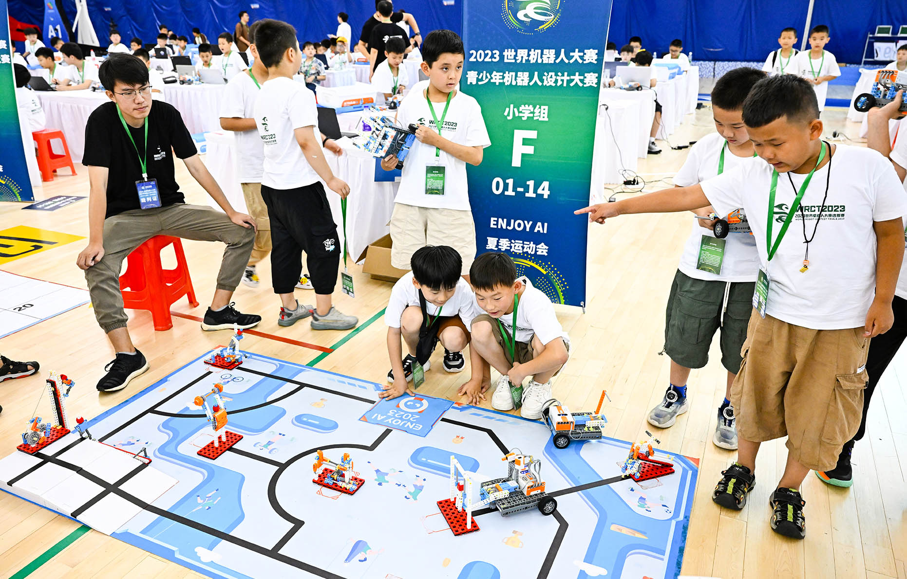 7月20日上午,2023世界机器人大会青少年机器人设计大赛郑州选拔赛暨“奔跑吧·少年”世界教育机器人大赛河南省公开赛在郑东新区龙湖全民健身中心开赛。河南省教育厅原副厅长吴廷伟、郑州市体育局三级调研员刘苗俊、郑州市郑东新区教育文化体育局体卫艺科科长李兴超、河南新发展体育文化产业有限公司总经理赵莹、河南省人工智能学会办公室负责人张艺畅出席并共同启动赛事。