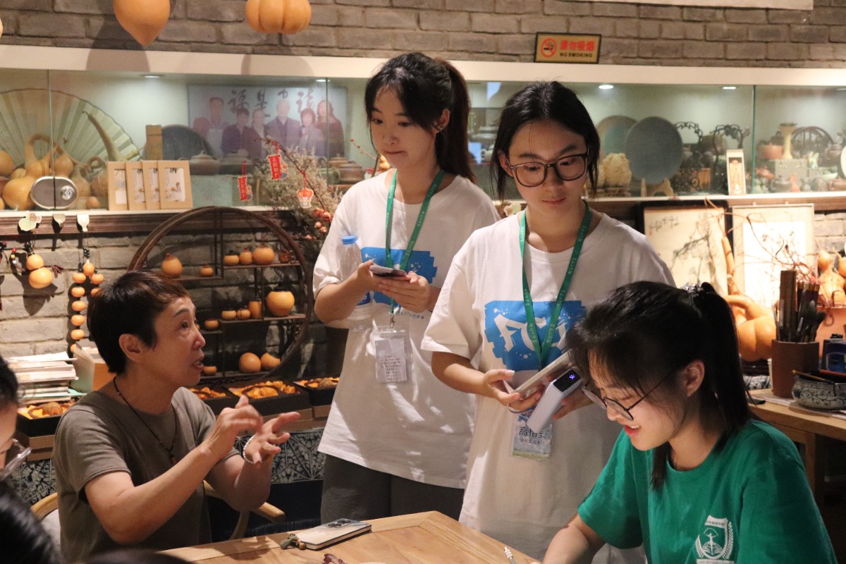学子们在阮氏微雕葫芦采访 (实习记者 黄璟瑜 摄)