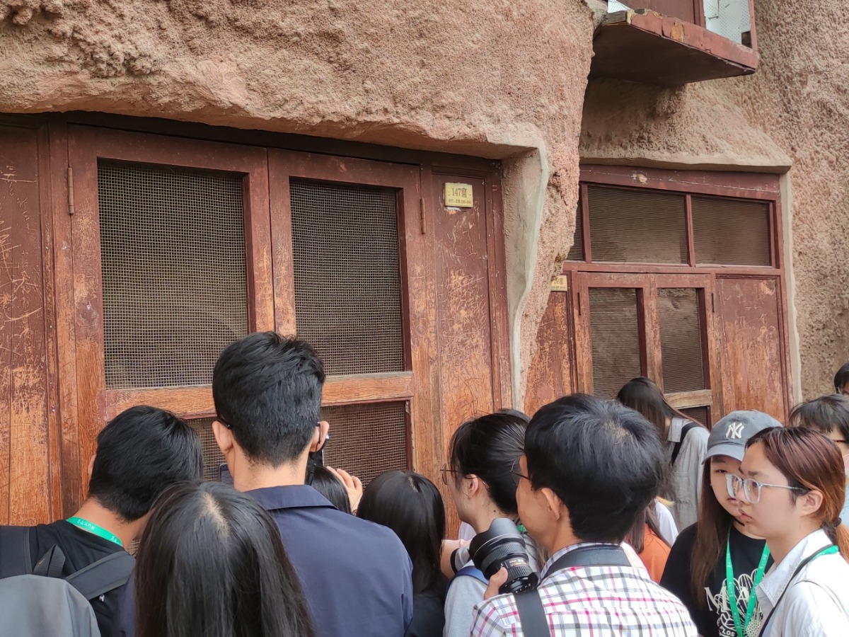 学子们在麦积石窟触摸塑像艺术历史脉络(实习记者 冯一笑 摄)