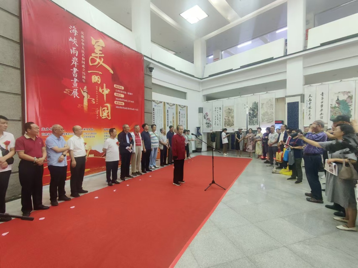 8月28日,为庆祝中华人民共和国成立75周年,由甘肃省台办主办,兰州文化联谊会、兰州市图书馆承办的 “美丽中国—海峡两岸书画作品展”在兰州开展。本次展览旨在通过书画作品展示祖国的大好河山,展现出中华民族的文化底蕴和精神风貌,促进海峡两岸文化交流与合作,增进两岸同胞的心灵契合,共同推动中华文化的传承发展。