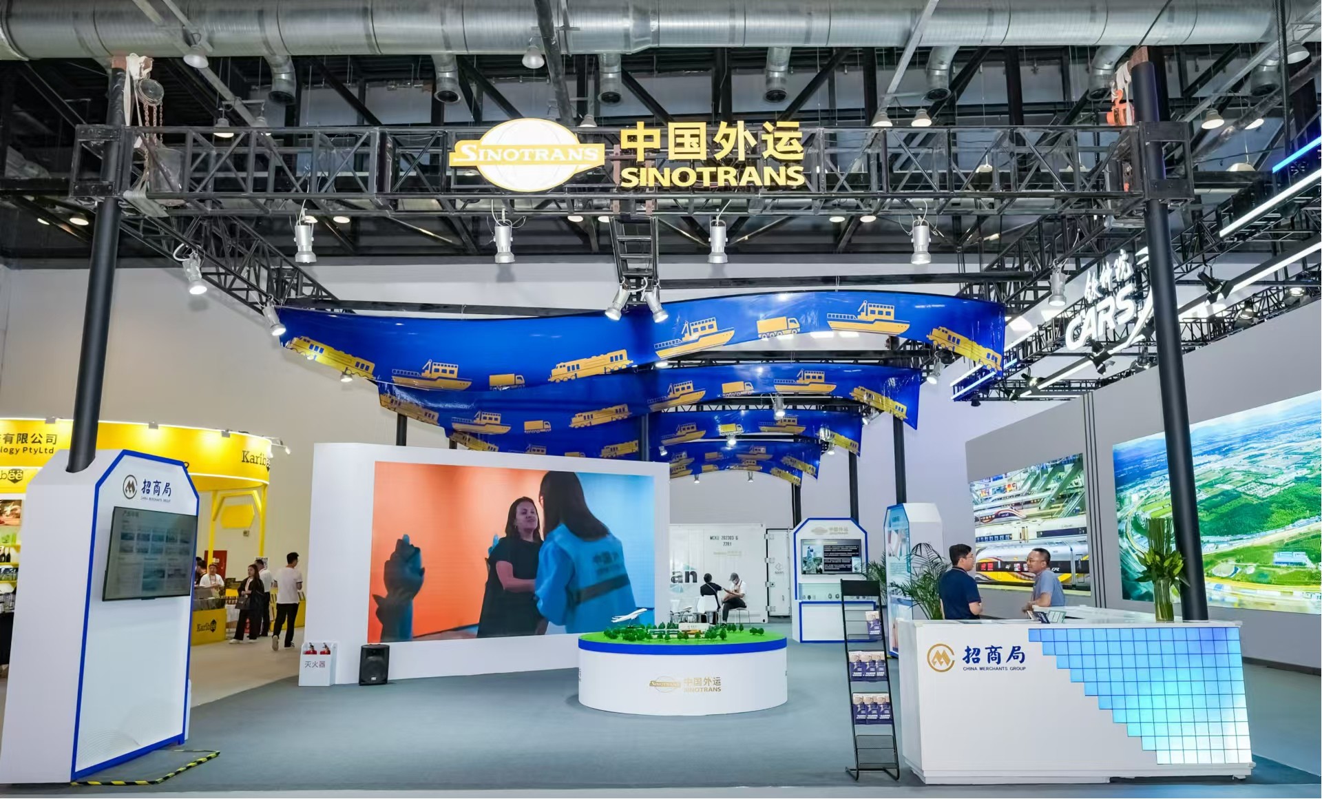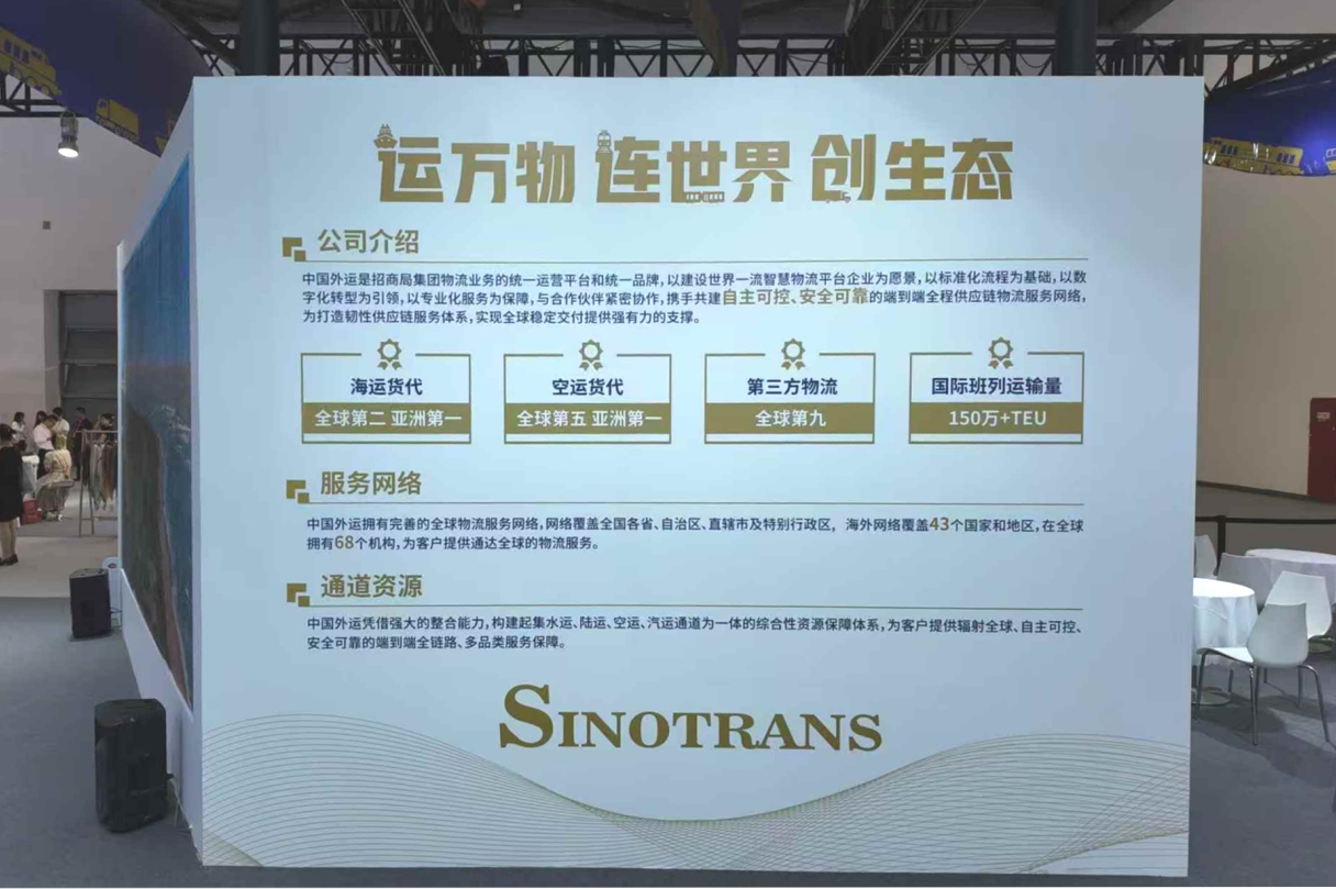此次中国外运展台围绕运万物、连世界、创生态的主题设计。主要展示中国外运对多行业,全链路的物流解决方案,通过提高清洁高效装备,健全节能低碳管理机制,实现数字化、智能化业务运作模式,成为行业内高质量、可持续绿色物流解决方案的重要参与者、贡献者和引领者。无论是私人搬家还是冷链运输,中国外运都能满足客户需求。