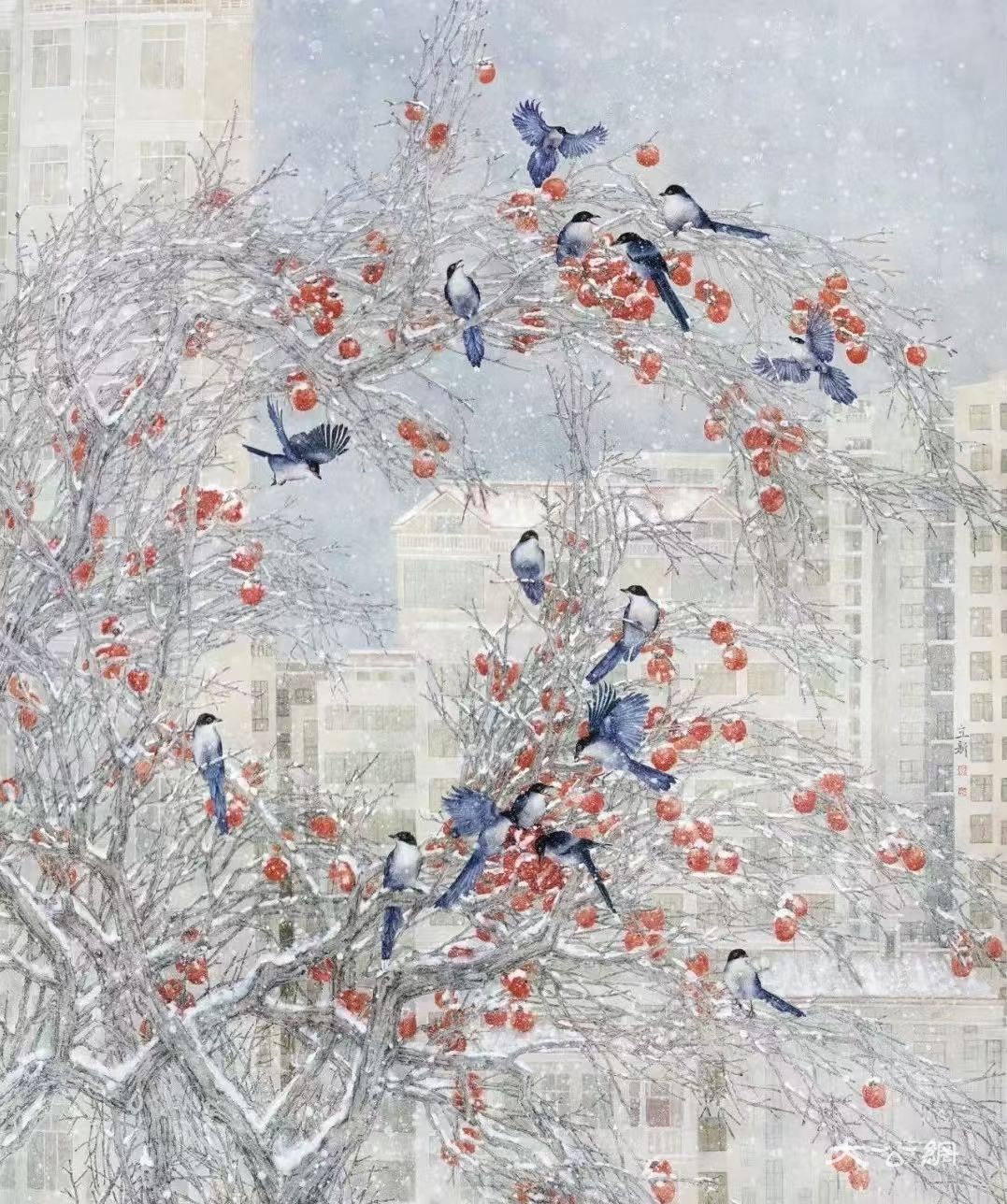 徐立新先生和他大量的花鸟画作品,显然已具备了诸多上述因素并潜在着一种巨大的艺术爆发力。广博而渊源的文化修养与特立独行的艺术天分,已经让徐立新的绘画作品臻至某种洒脱超然的艺术境界。