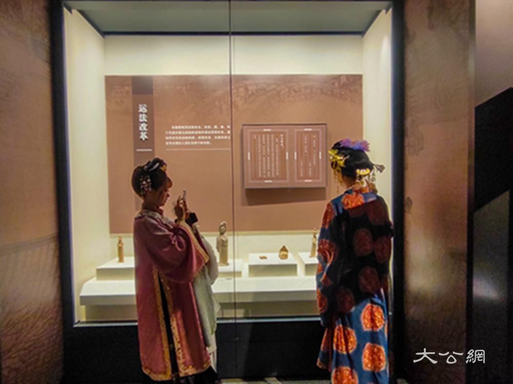 从古墓博物馆,走进隋唐大运河博物馆,生命仿佛是一种轮回,前者考虑身后的虚无缥缈,后者则是展现了人生的繁华与传奇,一脚踏入了繁华盛世的恢弘大唐时代。这里,每一件文物都在诉说着往昔的故事,从古老的沉船到精致的器具,从沧桑的石碑到绚丽的画卷,无不展现着大运河的独特魅力。与这些静静伫立的文物相对的则是,一群群身着汉服前来拍照打卡的年轻人。“霓裳随风 珠钗作响”,身着华服的年轻人与这些沉默着的文物对视着,一眼万年。文物,也在此时“活”起来了。